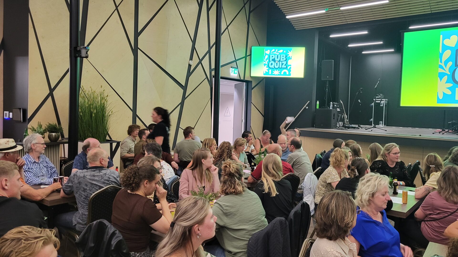 Freedtejûn wie dan de lêste aktiviteit tiidens de bloeiwike. En wat foar aktiviteit! Dorpsbelang traktearre it dorp op een spannende pubquiz. 22 teams, oh nee 23 teams gongen de striid mei elkoar oan. Omdat een mobile telefoan ferbean wienen hat jim razende reporter mard enkele foto’s om op disse webside op te nimmen. Troch de gesellige sfeer nei de pubquiz hat disse redaksje ek de priisútrikking mist….. De koelkast moest wer oanfult wurde. Hawwe jim noch foto’s?  Stjoer se nei us op! Tige Tank